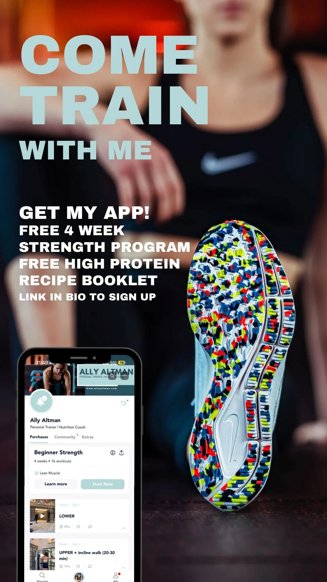 Inside the app, you’ll also get realistic nutrition guidance, honest conversations around diet culture, and easy recipes that fit into real life. Plus, you’ll be part of a supportive community where we train together, share wins, ask questions, and stay motivated — because you don’t have to do this alone.